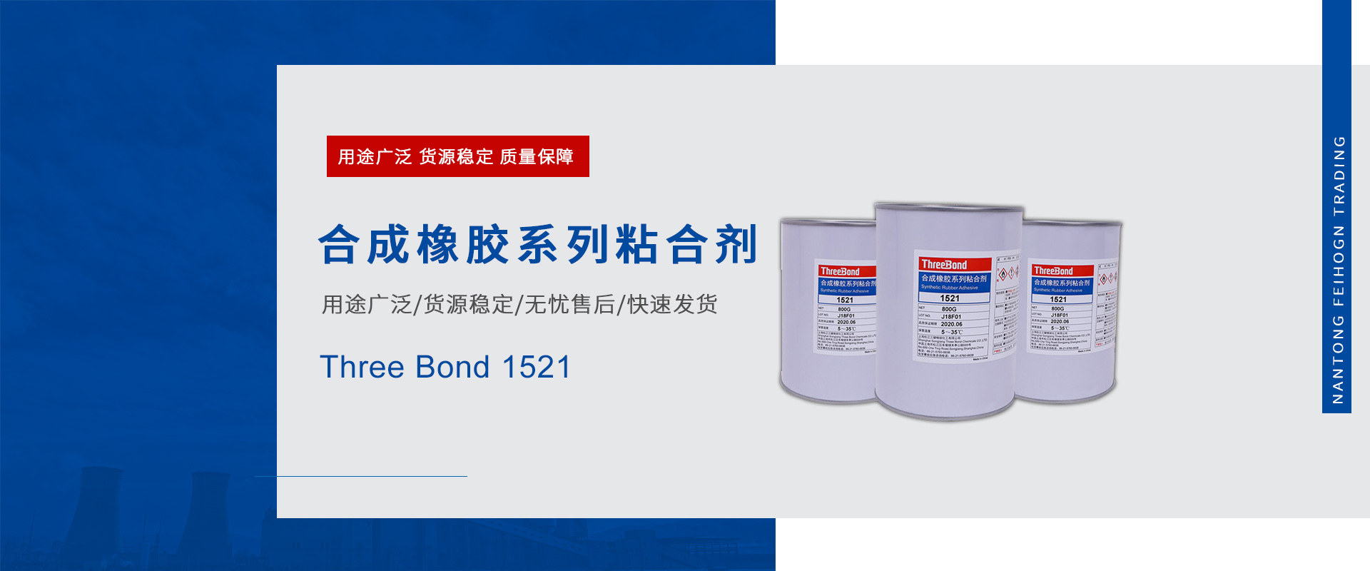 南通飛鴻商貿(mào)專營各大品牌膠粘劑,密封劑。主營樂泰、波士、天山、三鍵、富樂以及3M等知名品牌,為客戶提供多樣的服務(wù)、專業(yè)的技術(shù)支持和系統(tǒng)解決方案在江蘇地區(qū)經(jīng)營各類工業(yè)產(chǎn)品,其經(jīng)營范圍包括:螺紋鎖固密封膠系列,結(jié)構(gòu)粘接及平面密封膠系列,圓柱固持系列,金屬修補(bǔ)系列,耐磨耐腐蝕系列,表面清洗及銹蝕處理系列,地面防滑及修補(bǔ)系列,橡膠粘接及皮帶修補(bǔ)系列,減摩涂層及定位灌封系列,緊急修補(bǔ)系列,高溫密封修補(bǔ)系列,抗咬合潤滑劑系列,羅哥潤滑油系列等等,主要服務(wù)于汽車,工程機(jī)械,軌道交通,新能源,電子電器,船舶,冶金,航空航天,電力,醫(yī)療等諸多行業(yè)!